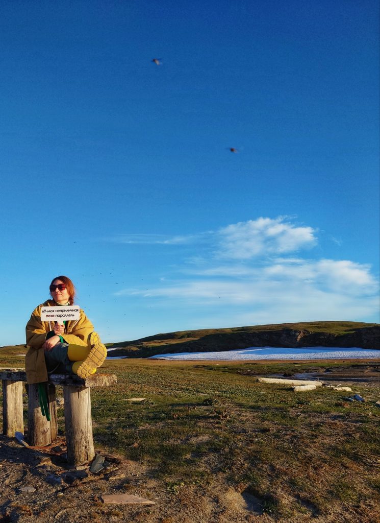 Здесь не всё решается деньгами… В нескольких километрах от пункта назначения наше транспортное средство сломалось в аккурат напротив маленького кладбища возле одной их первых полярных станций, открытой еще в 1913 году. В те далекие времена персонал жил на ней практически безвылазно, там же работали и там же умирали. За этими могилами уже давно никто не присматривает: кресты покосились, а надписи на них стёрлись или выгорели. В этом районе, по словам наших сопровождающих, неполадки с техникой случаются постоянно и массово. Пока наш водитель, проводник и его сын занимались ремонтом, я задумалась над причинами столь аномального явления и единственное, что сразу же пришло в голову — души этих отважных первопроходцев, добровольно оставивших тёплые насиженные места и внесших неоценимый вклад в развитие северного морского пути, маются без должного внимания и почтения. Я принесла к границе погоста печенье из нашего сухпайка, помянула, поблагодарив их за тяжкий труд и попросила разрешения проехать дальше, не гневаясь на нас… Из тундры мы вернулись в 04.30 утра. Наш водитель — Александр, поработав немного, отвёз нас в аэропорт, где мы молча стояли и курили одну сигарету за одной. Коптя северное небо, всматривались вдаль за горизонт в поисках таинственного Вайгача, а после ещё долго-долго обнимались на прощание!